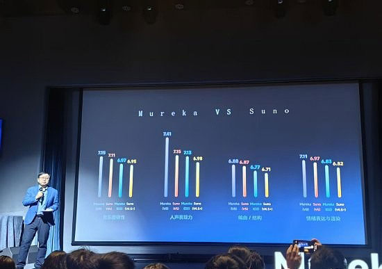 周亚辉表示,在Mureka V1.0发布或者到V6.0发布的时候,自己对AI会不会颠覆音乐产业也将信将疑,但是当公司真正把 V8训练出来的时候,自己听到V8创作的音乐时,就100%的觉得音乐产业肯定要变化了。