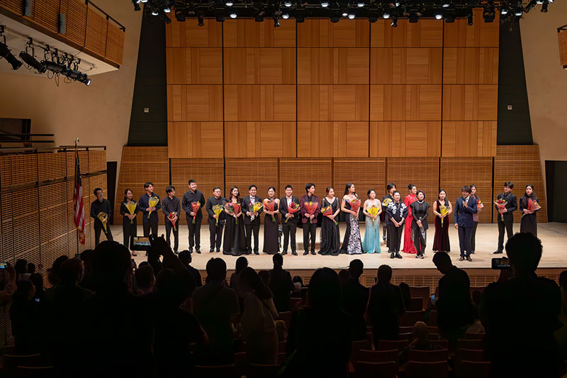 16 位来自全美顶级音乐学府的中国青年学子为观众倾情呈现了一场中西结合的音乐盛宴。音乐会还邀请到多位具有国际影响力的音乐学院教授、导师和知名音乐家莅临指导。