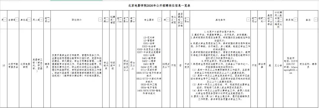 应聘人员最高学历所学专业须与附件《北京电影学院2026年公开招聘岗位信息一览表》中专业代码一致。若应聘人所学专业学科代码与所报考岗位专业学科代码不一致,或国外院校应聘人所学专业名称与所报考岗位专业学科不一致,但与岗位所要求的学科专业类同,将对照教育部历年公布的专业目录,以及经教育部批准的各学校特设专业目录,在报名系统中提供所在学校、院或系级出具的相关专业说明材料(国外院校考生提供附有中文翻译的专业课程目录及成绩单);同一专业的专业学位和学术学位研究生均可报名;所学专业与代码不一致的将结合实际情况进行审核。