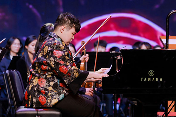 青年钢琴家刘明康率先登场拉开音乐会序幕,当他的指尖落于黑白键,理查德·克莱德曼那曲轻快又温馨的《童年的回忆》敲击着小观众的心灵。刘明康7岁时被确诊患有孤独症,后凭借非凡的音乐天赋进入中福会少年宫钢琴班,学琴不到一年,他就能精准演绎理查德·克莱德曼的多首钢琴曲,并多次和钢琴家宋思衡同台演奏。