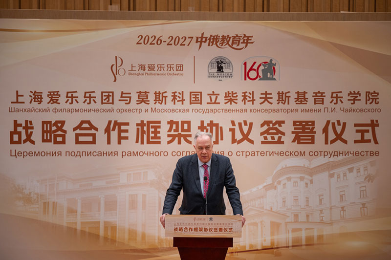 上海爱乐乐团团长高山峰表示,乐团始终以推动国际文化交流合作、提升中华文明传播力影响力为己任,此次与柴院的深度合作,不仅将丰富乐团艺术生产与人才培养体系,更将打造可复制、可推广的跨国文化交流模式。柴院校长亚历山大·索科洛夫也表示,期待以音乐为桥梁,深化中俄两国音乐界的友谊与合作,让古典音乐成为增进两国民心相通的坚实纽带。