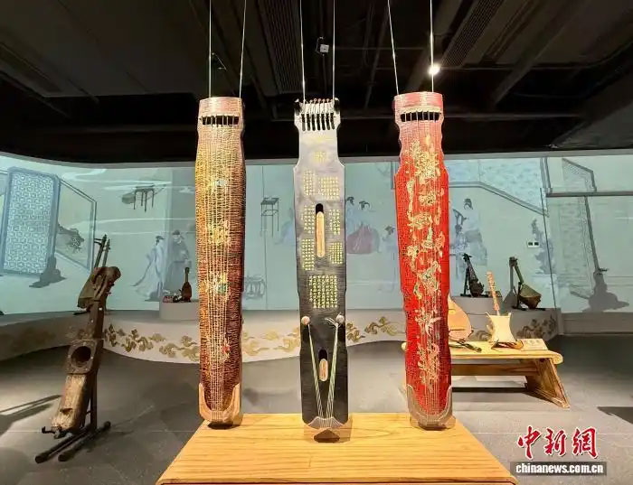 图为博物馆展出的中国古琴。