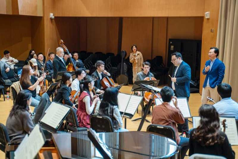 乐团成员汇集了上音管弦系主任、大管演奏家刘照陆教授,长笛演奏家马勇教授,圆号演奏家顾聪副教授,低音提琴演奏家巢晖副教授,单簧管演奏家陈坤副教授以及青年教师张润崯、巩媛、施宇成、耿文彬、朱宛晨、潘衍、刘铭以及博士生沈子钰等众多专业翘楚。
